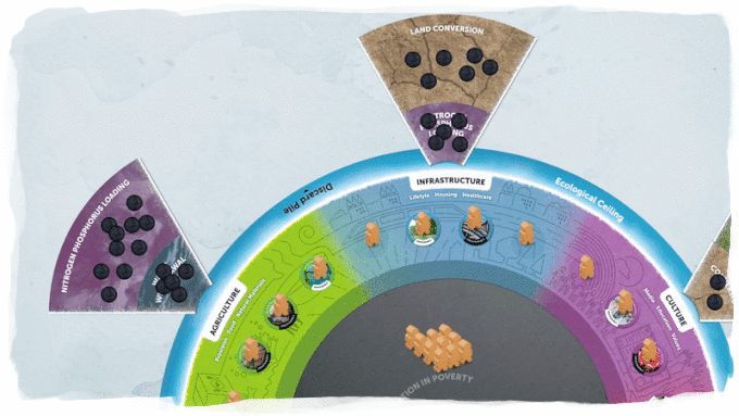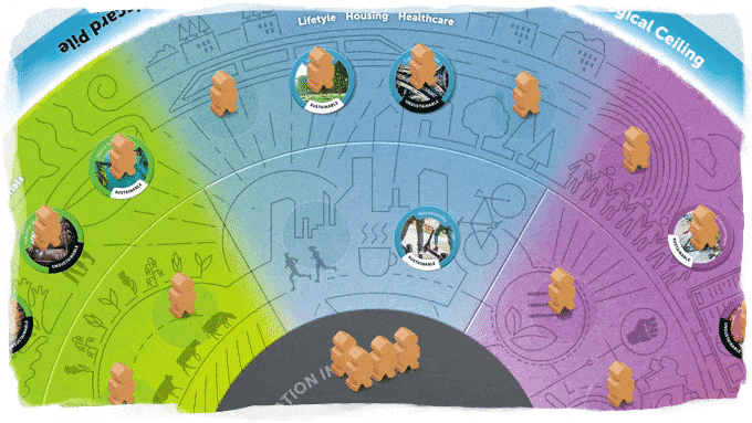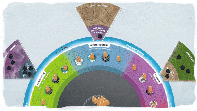 The game design is based on the ‘doughnut economics’ system, devised by Oxford Economics Professor, Kate Raworth, and demonstrates how our societal needs may be balanced alongside our planetary impact.