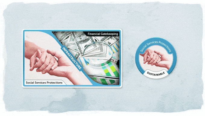 (represented by wooden meeple), with each Practice providing for the needs of two and keeping them out of poverty.