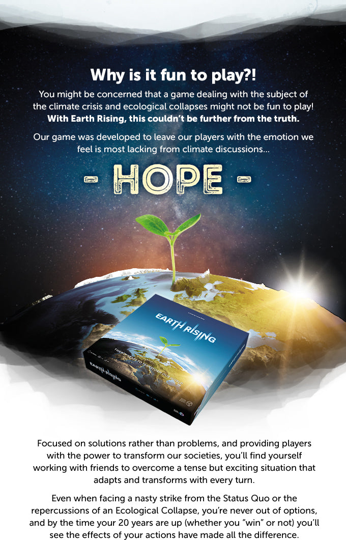 It's not enough to us that our game demonstrates the situation we're in through an engaging, entertaining and social medium.